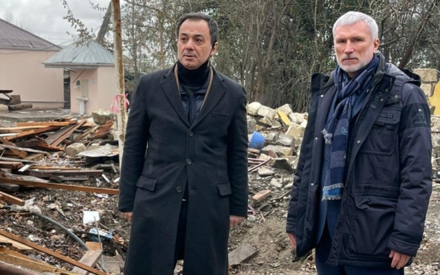 Как написал Журавлев на своей странице в Facebook, "проехались по районам, которые подверглись бомбардировкам с армянской стороны".