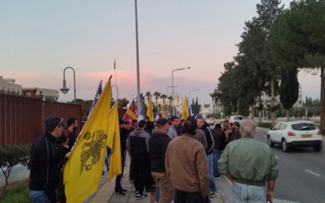 На митинге выступили лидер партии E.LA.M. Христос Христу, глава столичного отделения партии Жорж Хаджиоану, руководитель региональной организации фронта в Пафосе Петрос Кундурешус, другие соратники.