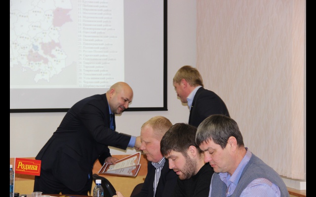 После небольшого перерыва председатель регионального отделения Валерий Столбунов торжественно вручил новым членам «РОДИНЫ» партийные билеты, а также почетные грамоты активистам партии, проделавшим огромную работу на благо региона.