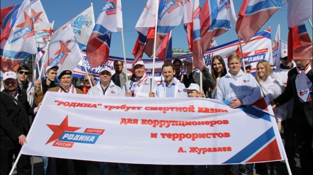 Колонна партии "РОДИНА" на первомайской демонстрации в Санкт-Петербурге.
